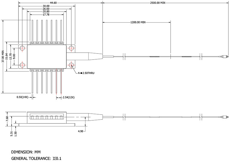 [2] Tracking error is defined at a given case temperature,it is the change in fibre power,at a constant monitor current, relative to the value measured at case 25℃